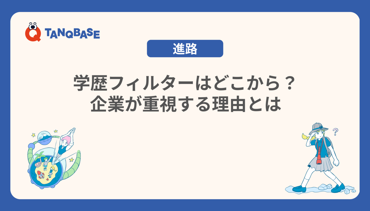 本記事では、学歴フィルターの大学や企業が学歴フィルターを行う理由、取り入れている企業の特徴などを解説しました。今後、中学校や高校で進路先について調べると、悩むことが多くなるでしょう。TANQ BASE(旧:はたらく部)では、将来に不安を抱えている学生に、学校以外の場所を提供しています。