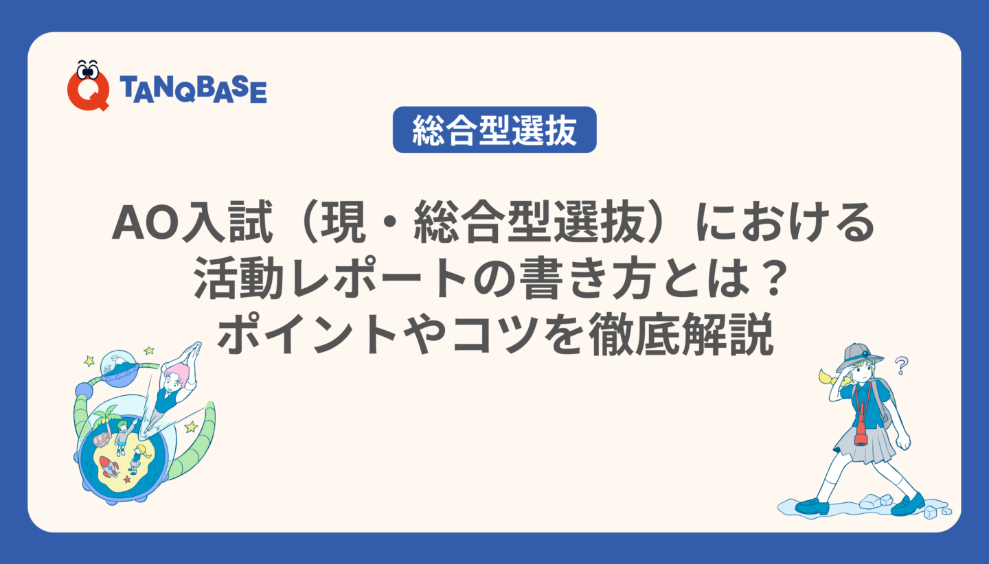 大学受験の入試方法のひとつであるAO入試(現・総合型選抜)(総合型選抜)を受験する際に提出を求められるのが活動レポート(活動報告書)です。活動レポートの内容や充実度は、AO入試(現・総合型選抜)の合格率に大きく影響します。本記事では、AO入試(現・総合型選抜)における活動レポートを書く際の、ポイントやコツについて分かりやすく解説します。これからAO入試(現・総合型選抜)を受験しようとしている方やその保護者、関係者は必見の内容となっているので、ぜひ最後までご覧ください。