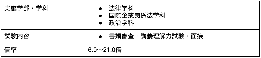 参考:明治大学 | 入試結果(学校推薦型・総合型選抜) | 河合塾Kei-Net大学検索システム (keinet.ne.jp)