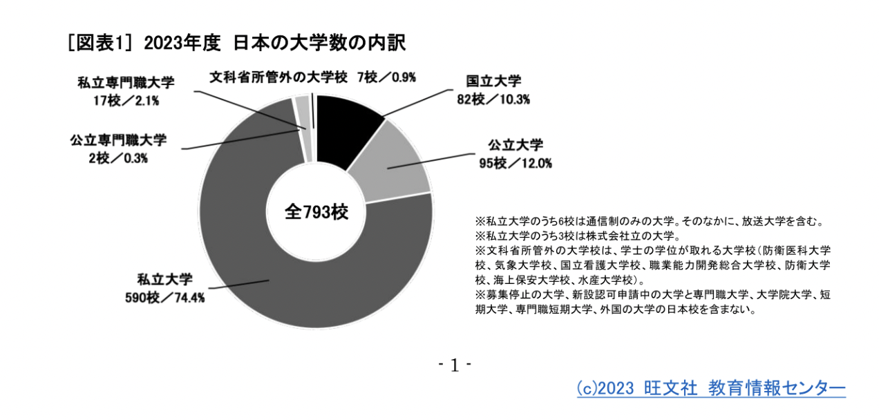 (参考:日本の大学数 2023年度は793大学|旺文社教育情報センター (obunsha.co.jp))