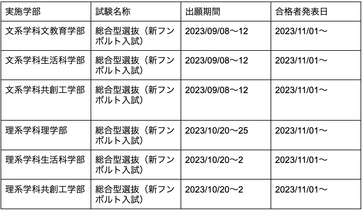 以下は、すべて2023年の受験スケジュールです。日程や内容が変更になるということもゼロではありませんので、最新の情報は、各大学からの発信を見逃さないようにしてください。