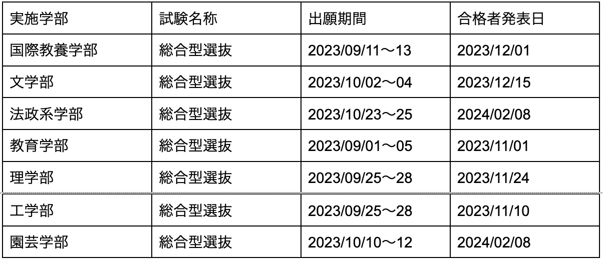 【関東圏私立大学】総合型選抜の日程一覧