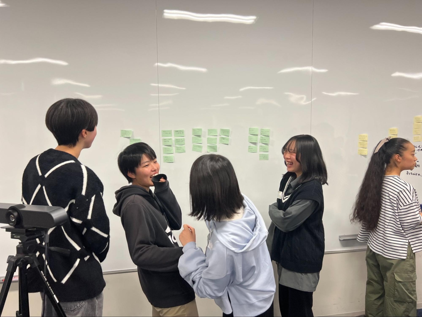 1日目は、立命館大学・立命館宇治高等学校とはたらく部の開会挨拶のあと、生徒たちはアイスブレイクとチームビルディングを実施しました。3日間、一緒にワークに取り組むのは4人の仲間たち。早速笑顔で自分について話す姿に、会場の空気が温まりました。