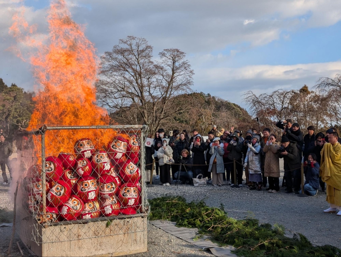 勝尾寺では毎年12月28日に『勝ちダルマ奉告梵焼祭』として、その年に奉納いただいた「勝ちダルマ」を、報告と御礼を込めて神仏にご報告するという意味で、お焚き上げをしています。